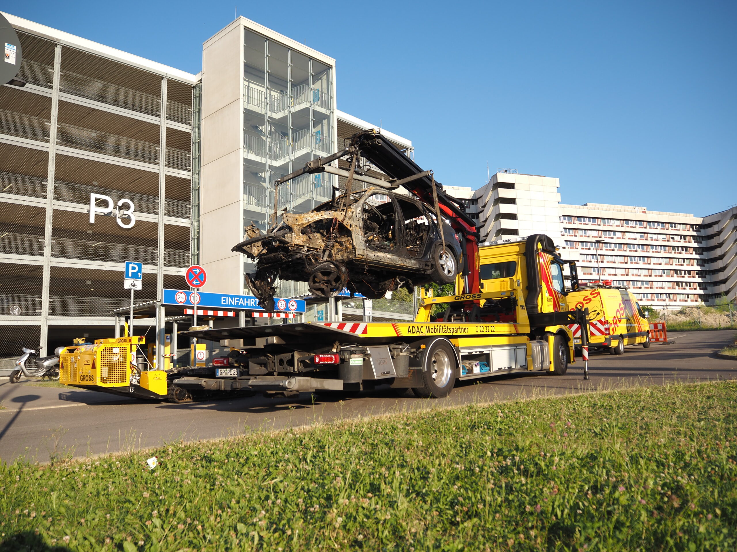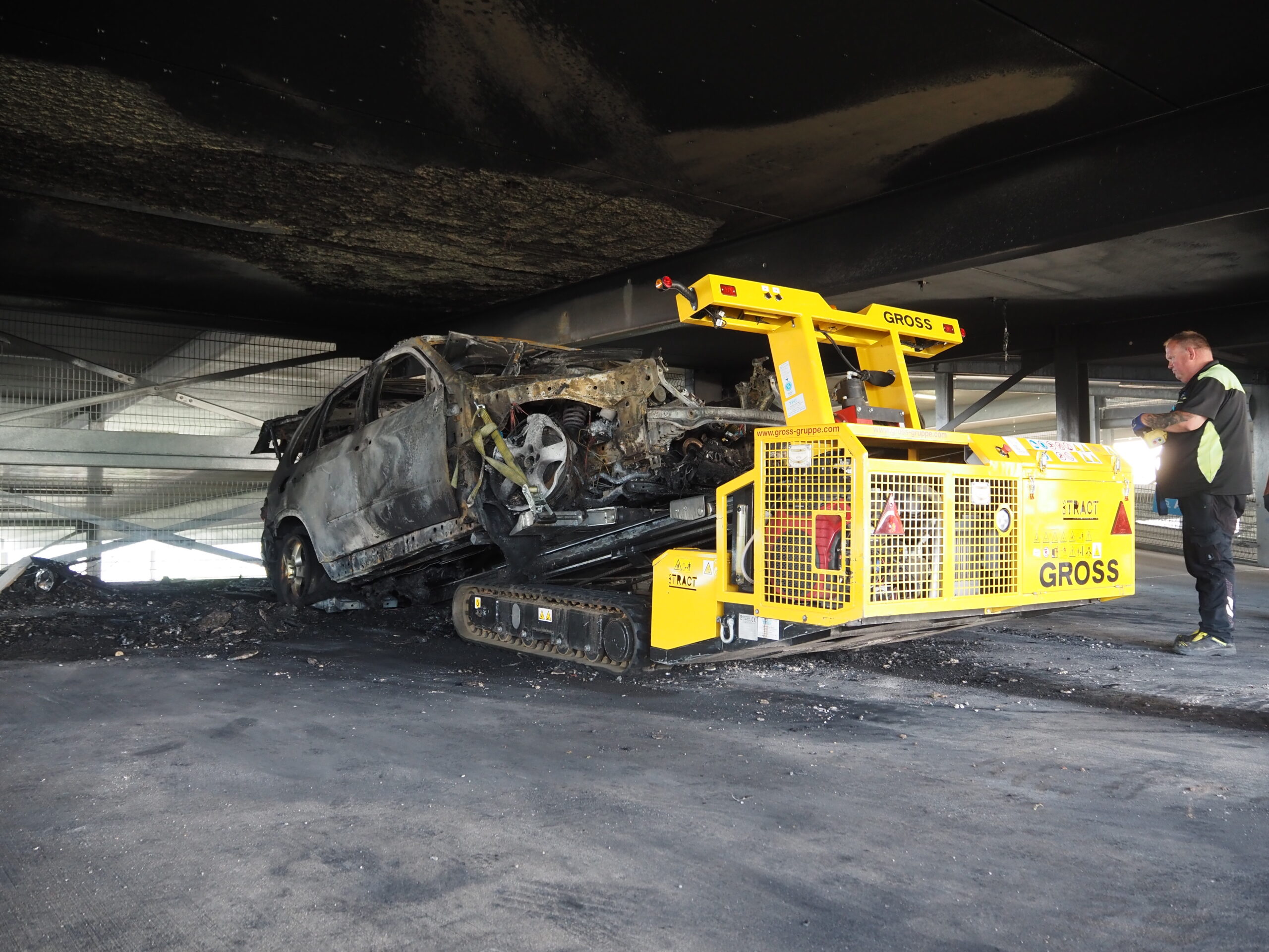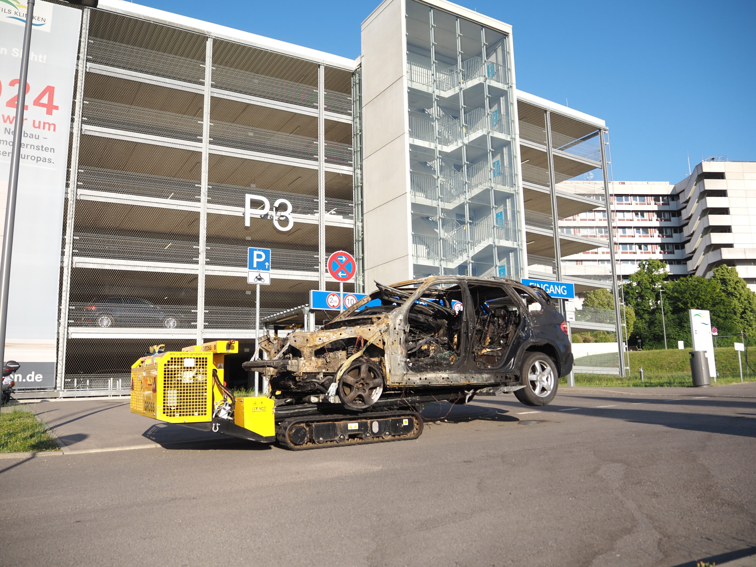 Bergung Brandfahrzeug aus Parkhaus in Göppingen
