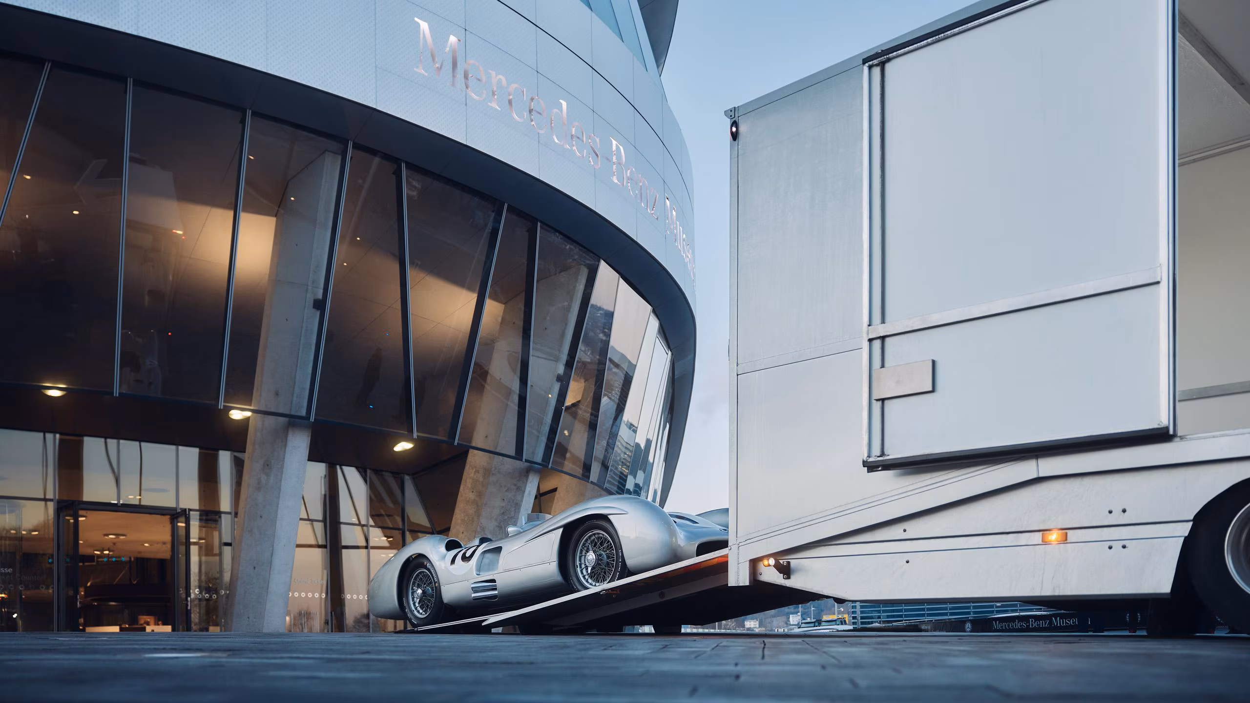 Transport Silberpfeil zur RM Sotheby´s Auktion im Mercedes-Benz Museum